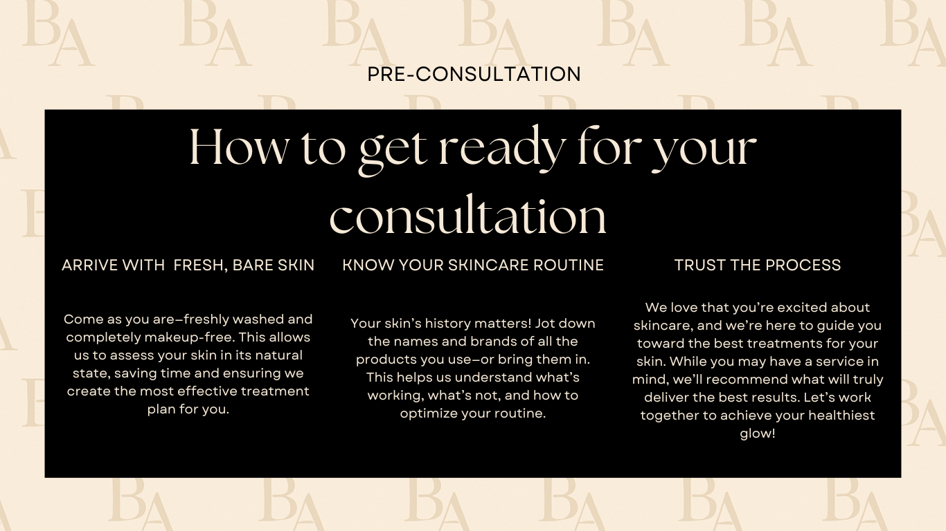 Your $100 consultation fee will go toward skincare products purchased on the day of your appointment, ensuring you leave with everything you need to start seeing results.